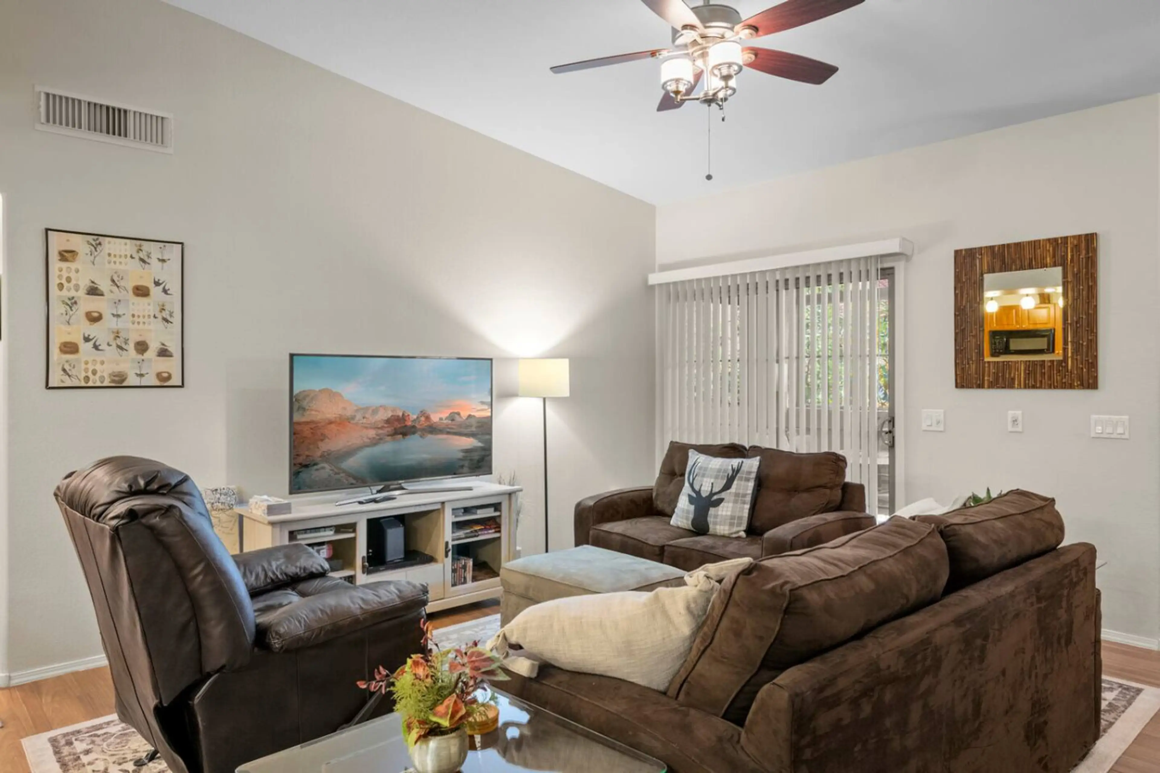 Come and enjoy this gorgeous and stylishly decorated condo in Mesa! Fully stocked with everything you'll need for your stay, this is the perfect place to wind down after a long day. Cool off from the Arizona sun in one of the two swimming pools located on the grounds or start your day off with a mor...