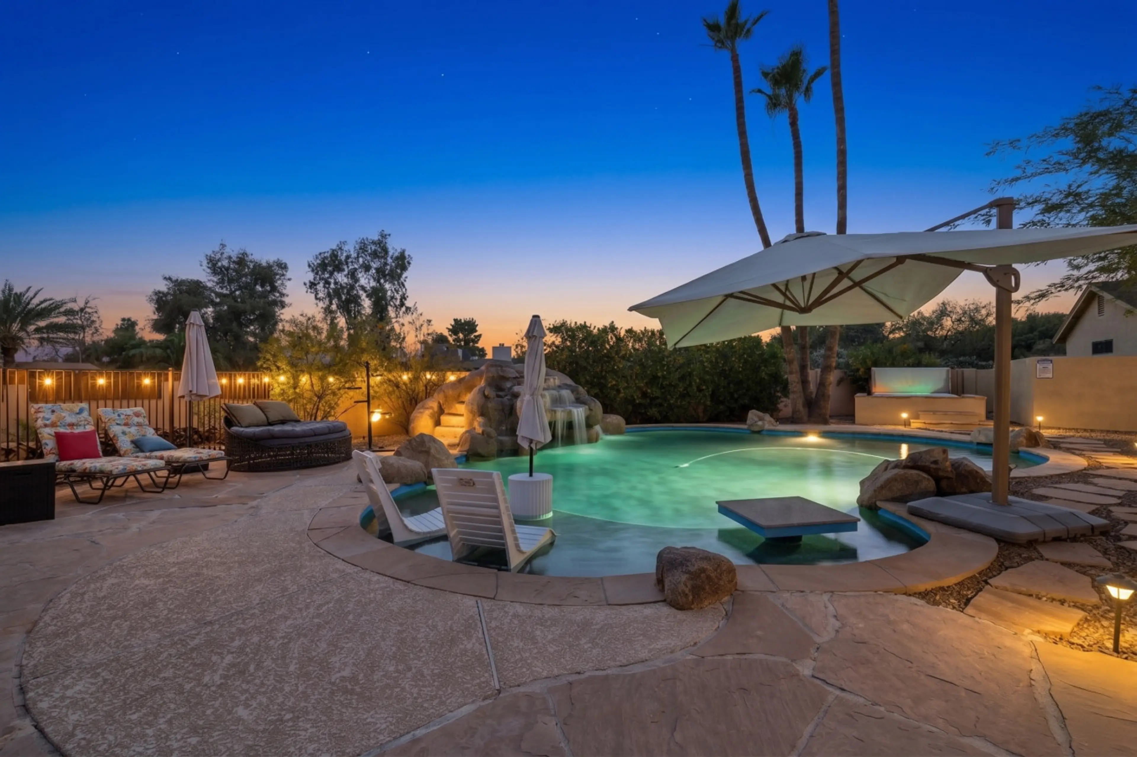 Welcome to your Scottsdale oasis! Our cheery 6BR/3BA retreat is built for fun. Jump into the pool, relax in the spa, or challenge friends to pickleball, golf, and putting—all in your massive backyard! The separate game house is packed with hits, while an outdoor kitchen awaits your BBQ. Just minutes...